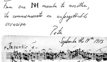 "Peter, September the 19th 1978". I was deeply touched by this gift and flattered by Peter's high expectations of my strictly